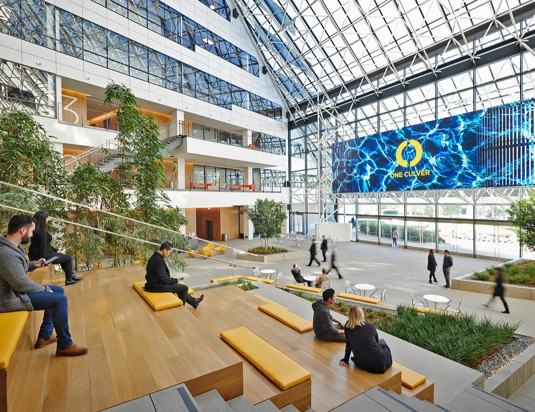 Located in the heart of Culver City’s creative corridor, One Culver is an architectural masterpiece situated directly across from the historic Sony Pictures Studios. The experience centers around the Atrium, a breathtaking glass-enclosed space featuring a dramatic grand stair and a stunning 80-foot media wall.